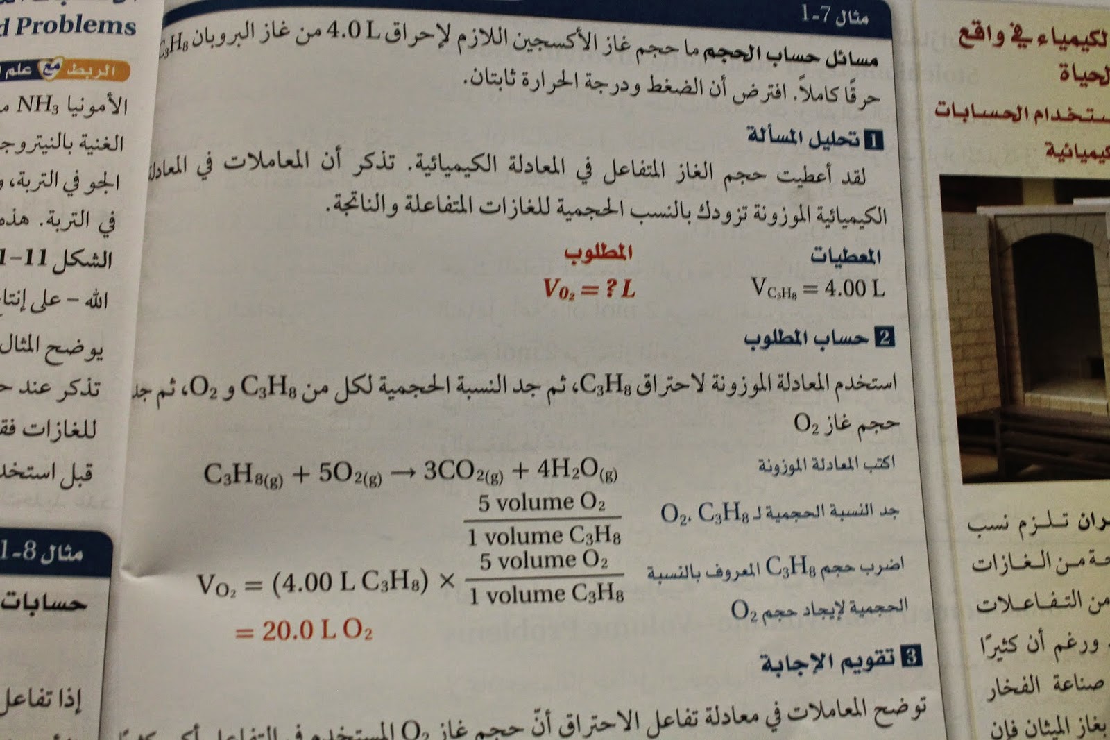 الحسابات المتعلقة بالغازات كيمياء4 ثالث ثانوي المنهج السعودي