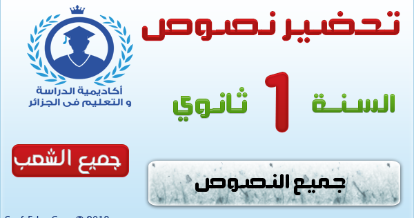 تحضير نصوص اللغة العربية للسنة الاولى ثانوي جذع مشترك علوم